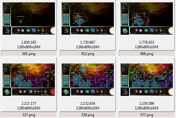 mit alten savegames (und davon habe ich viele) geht es eigentlich relativ schnell - was mir fehlt, ist ein großer Bildschirm.rainer hat geschrieben:vll. geht es mit Einzelbilder-morphen besser/einfacher geht, am besten mit großen Bildschirm, wo man viel vom Imperium sieht und immer mit der gleichen Zoom-Stufe abkopiert.
